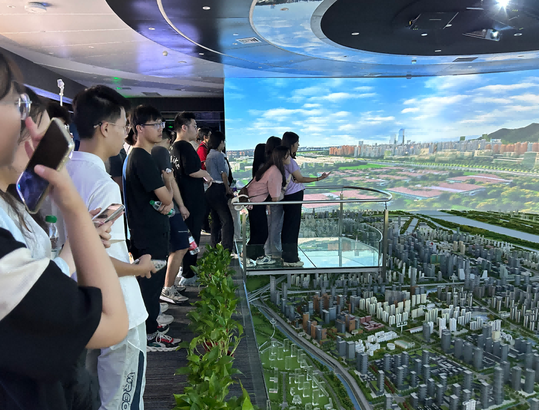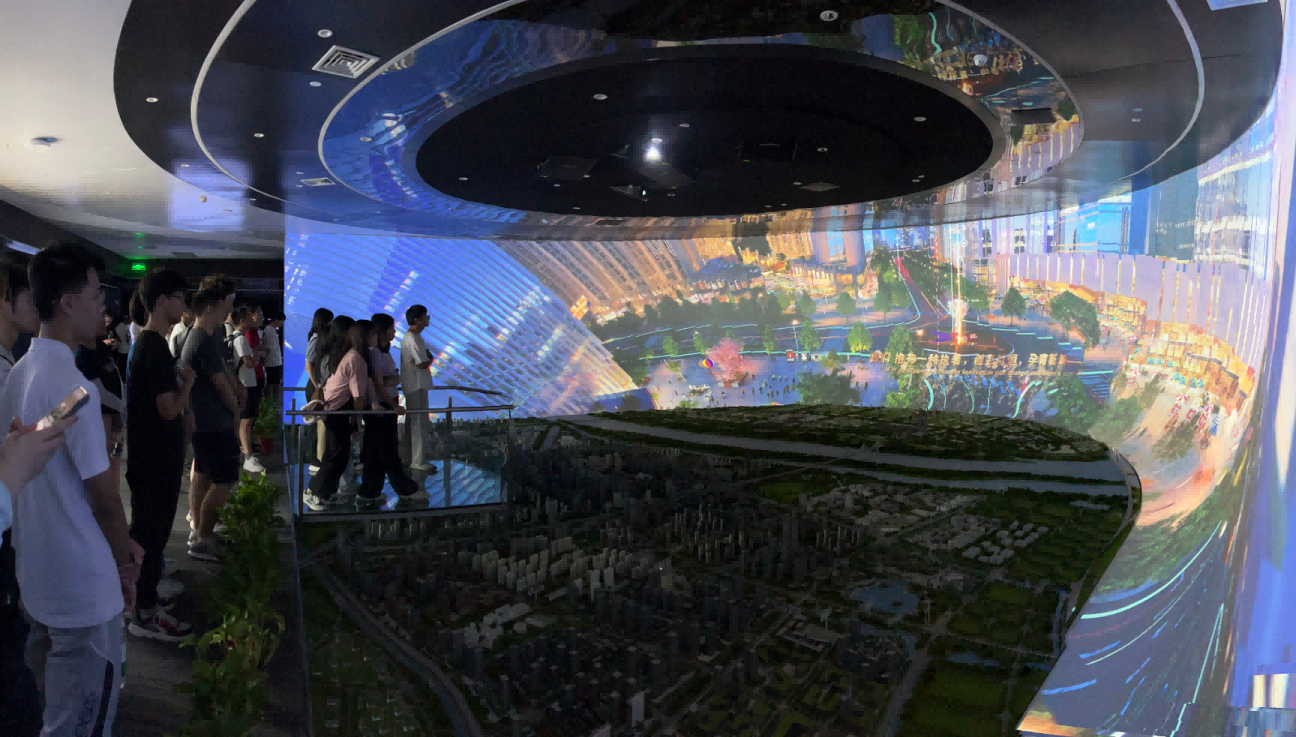 园区内现代建筑群错落有致,每一砖一瓦都蕴含着创新和科技的基因。公海555000官网科技IT菁英暑期实训营的学员们怀揣着对科技的无限憧憬步入研创园展厅。展厅内部设计充满科技感,一块块巨大的模型和显示屏映入眼帘,生动展现了研创园的科技规划,以及从梦想走向现实的开展历程。